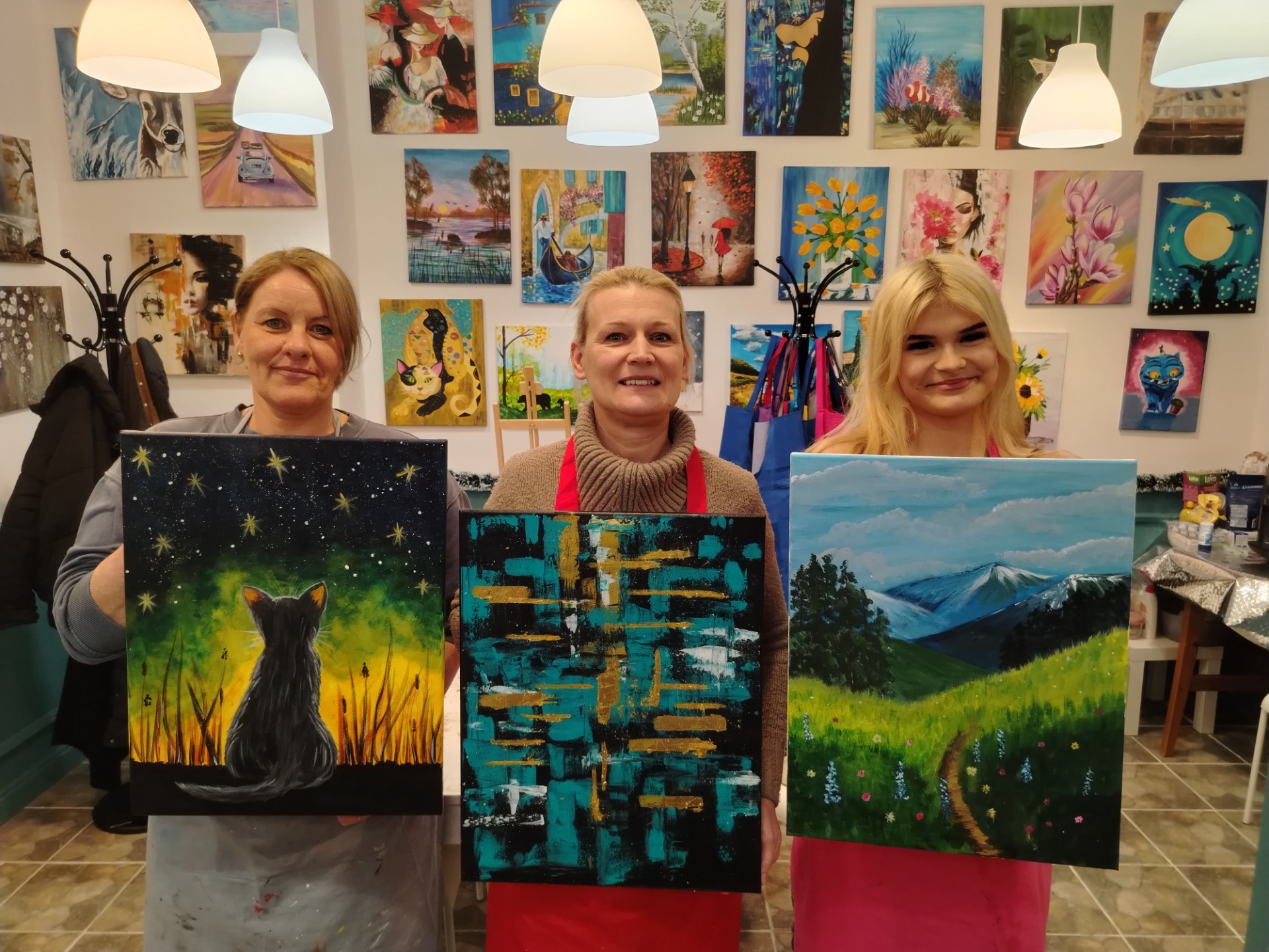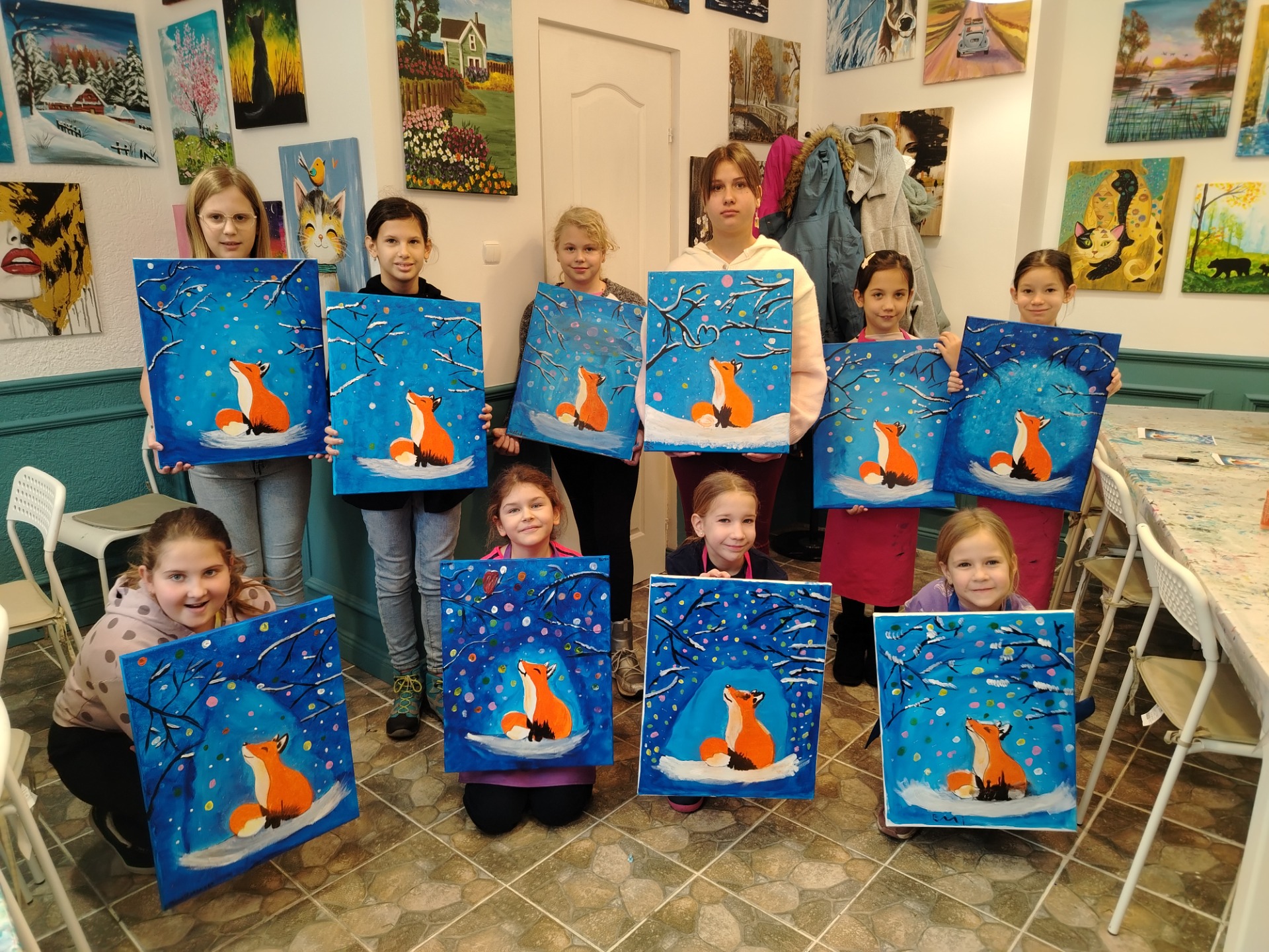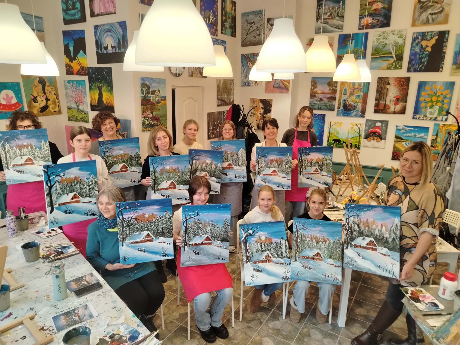 🎨❄️ Január 18-án ismét teltházzal festettük az "Erdei kunyhó" című képet! ❄️🎨