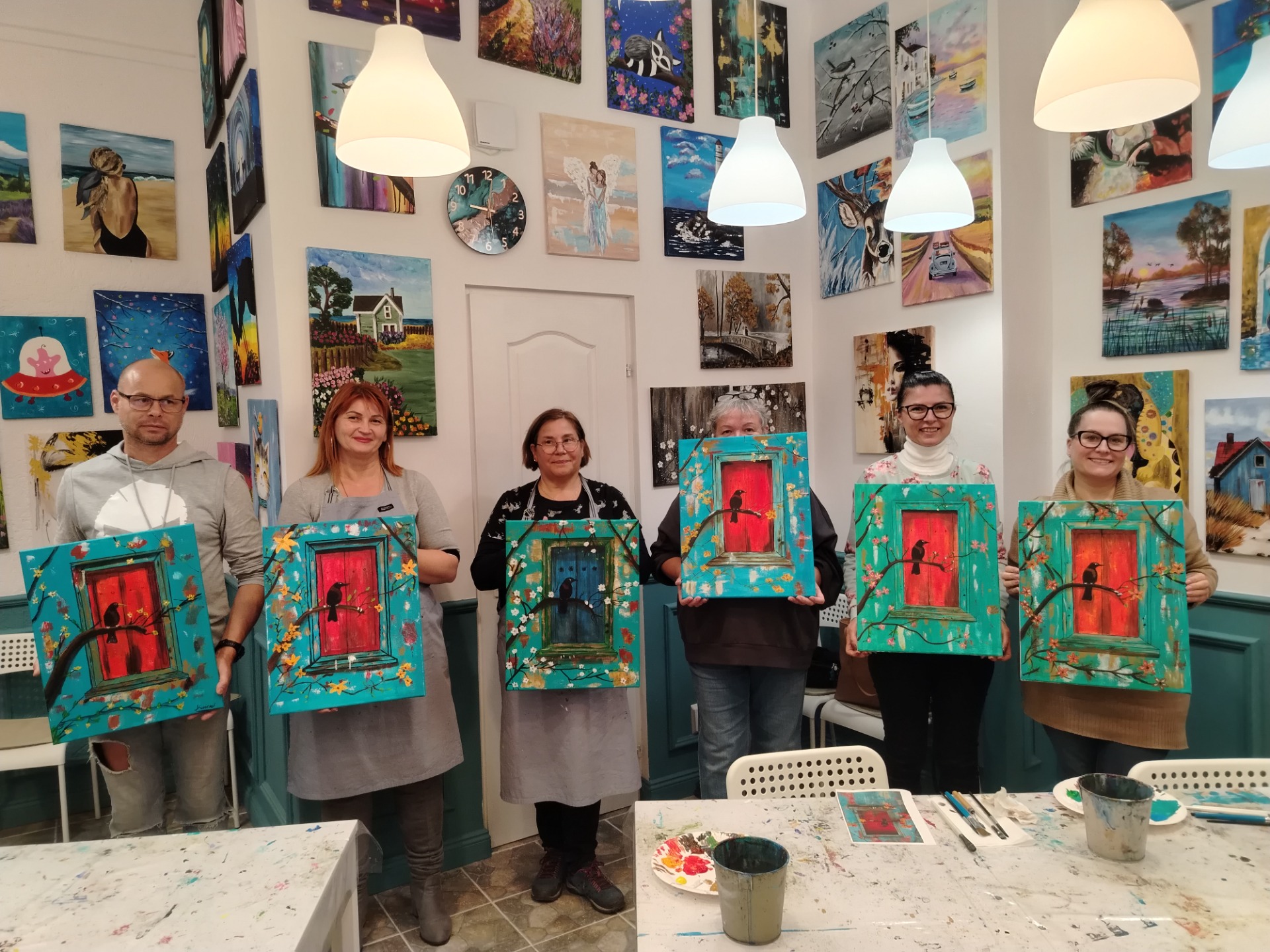 A résztvevők gyönyörű képeket hoztak létre; mindegyik festmény saját hangulatot kapott, és külön öröm volt látni, mennyire felszabadultan alkottak a végére. A "madárkaka" megfestésénél pedig kitört a nevetés – sosem gondoltam volna, hogy valaha ilyet festek, de imádtam a helyzetet! 😄