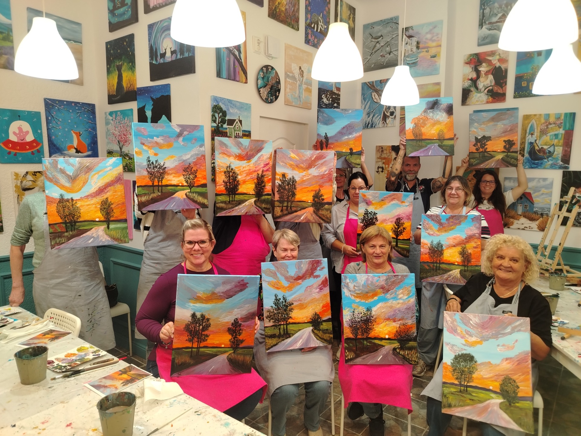 Október 14-én egy igazán különleges technikával és témával vártalak benneteket a KATart élményfestés stúdióban: a "Alkony varázsa" című képet festettük meg, méghozzá festőkéssel! 🎨 Ez a módszer elsőre egyszerűnek tűnhet, de aki ott volt, tanúsíthatja: komoly koncentrációt és bátorságot igényel – és pont ettől olyan izgalmas!