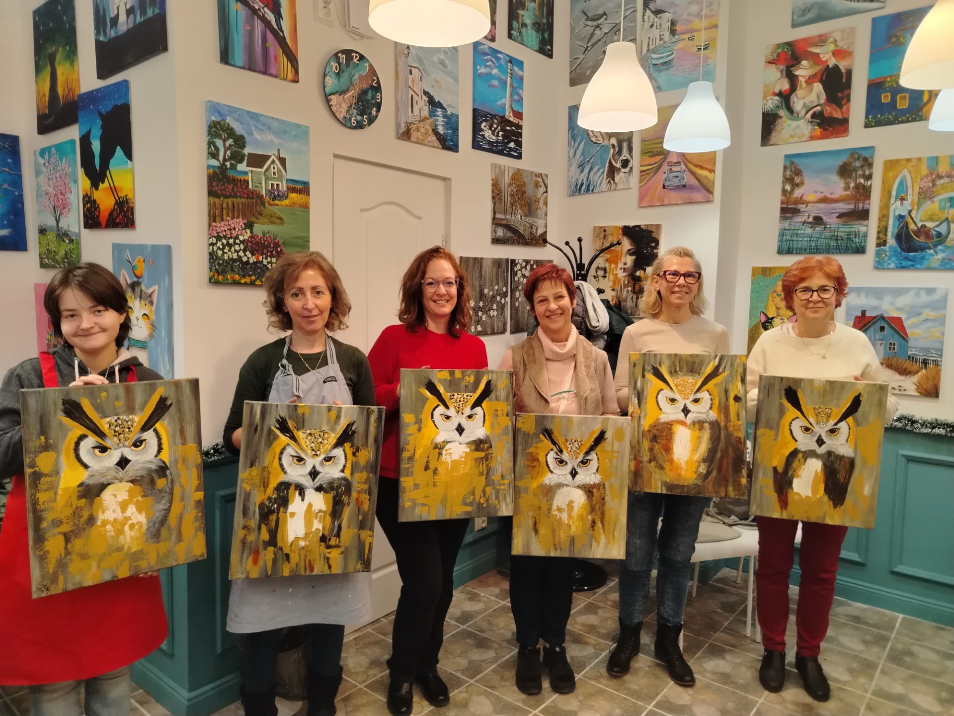 ✨ Arany bagoly élményfestés – festőkés, nevetés és valódi kikapcsolódás 🎨🦉