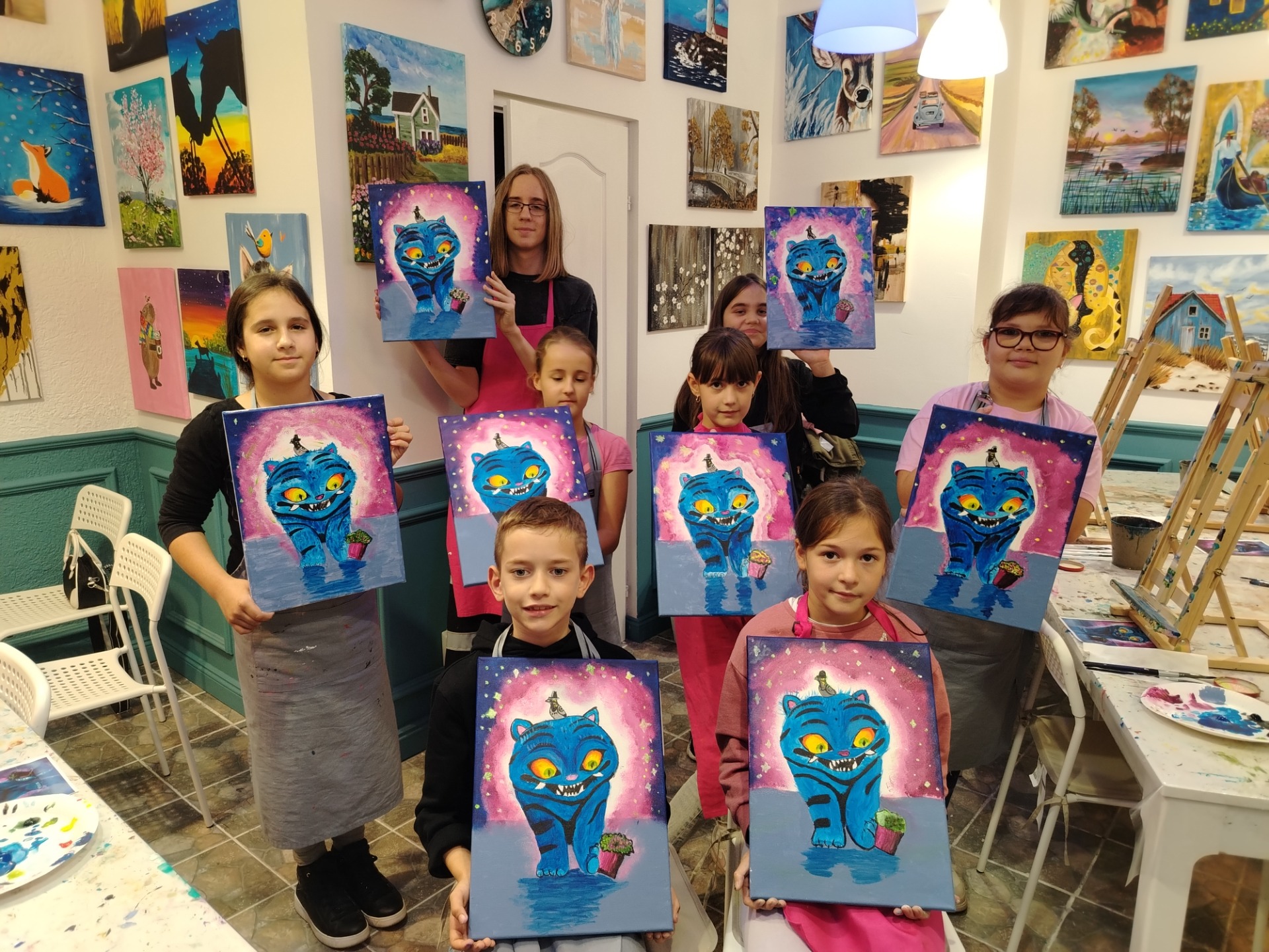 Október 26-án ismét megtelt alkotókkal a KATart élményfestő stúdió – ezúttal már másodszorra festettük meg a népszerű Derpy & Sussie témájú képet! Az őszi szünet közepén igazi kreatív kikapcsolódásban volt részünk: a zene ritmusára együtt mozdult a társaság, miközben lépésről lépésre formálódott a vásznon a különleges UV-fényben világító alkotás. 🎨✨