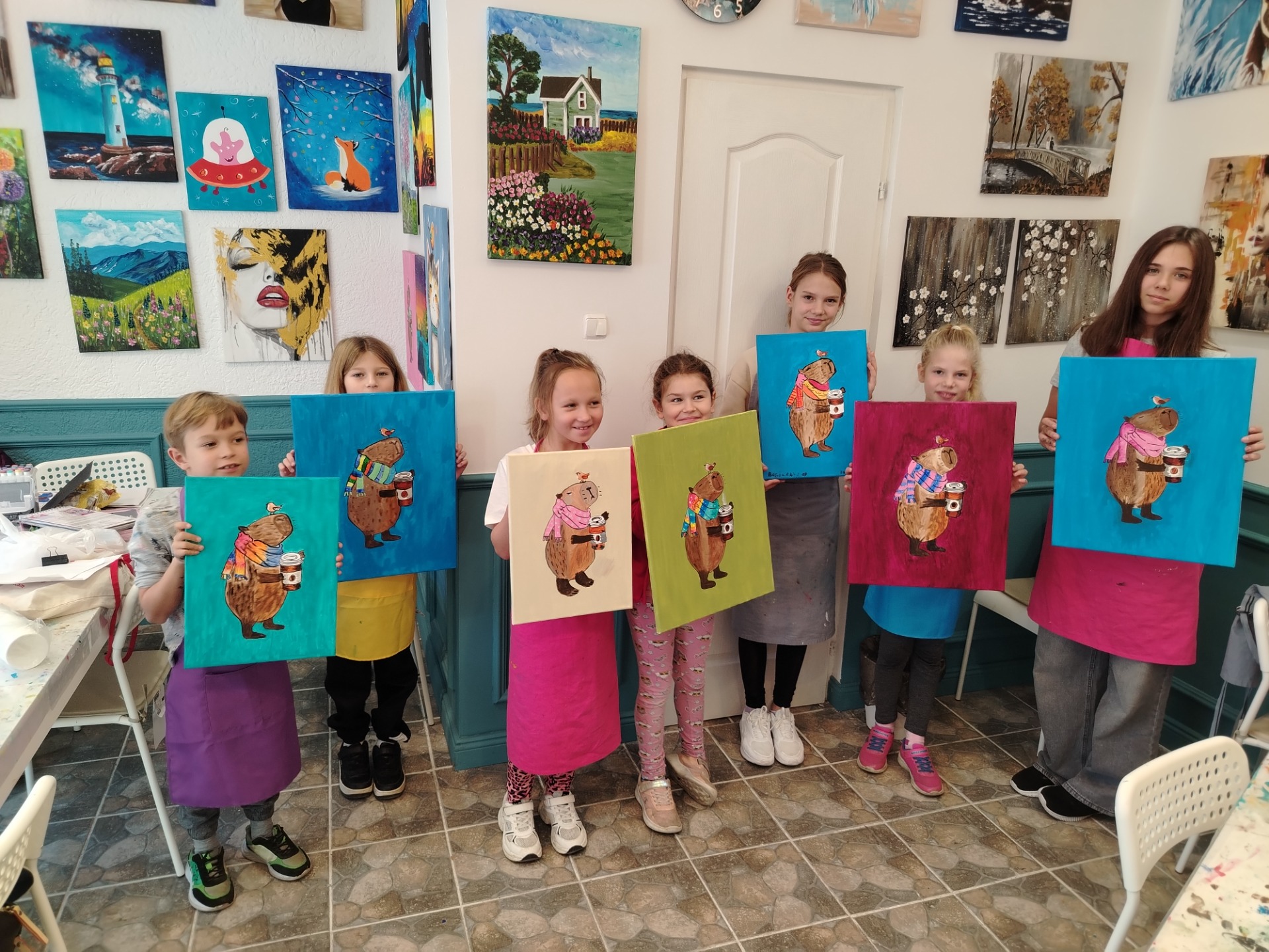 Október 29-én, az őszi szünet kellős közepén egy igazán szuper kis csapat érkezett hozzám, hogy együtt megfessük a kapibara képet. Már az első ecsetvonásoknál látszott, hogy mindenki teljes lelkesedéssel veti bele magát az alkotásba – és a végeredmény egyszerűen gyönyörű lett!