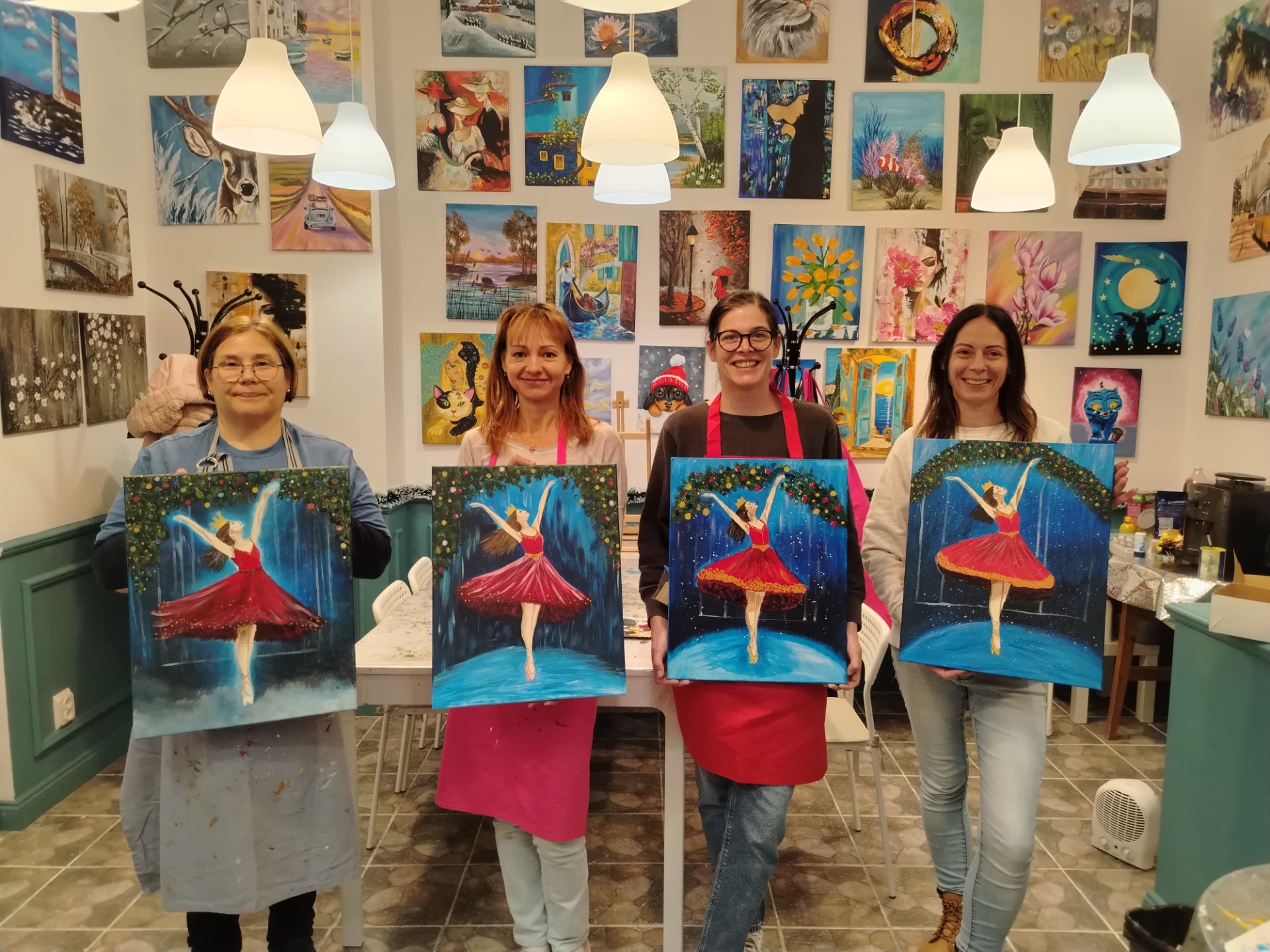 December 20-án délután egy igazán különleges festéssel búcsúztattuk az évet a KATart élményfestéstő stúdióban. A választott téma egy gyönyörű karácsonyi balerina volt – elegáns, ünnepi és tele varázslattal ✨