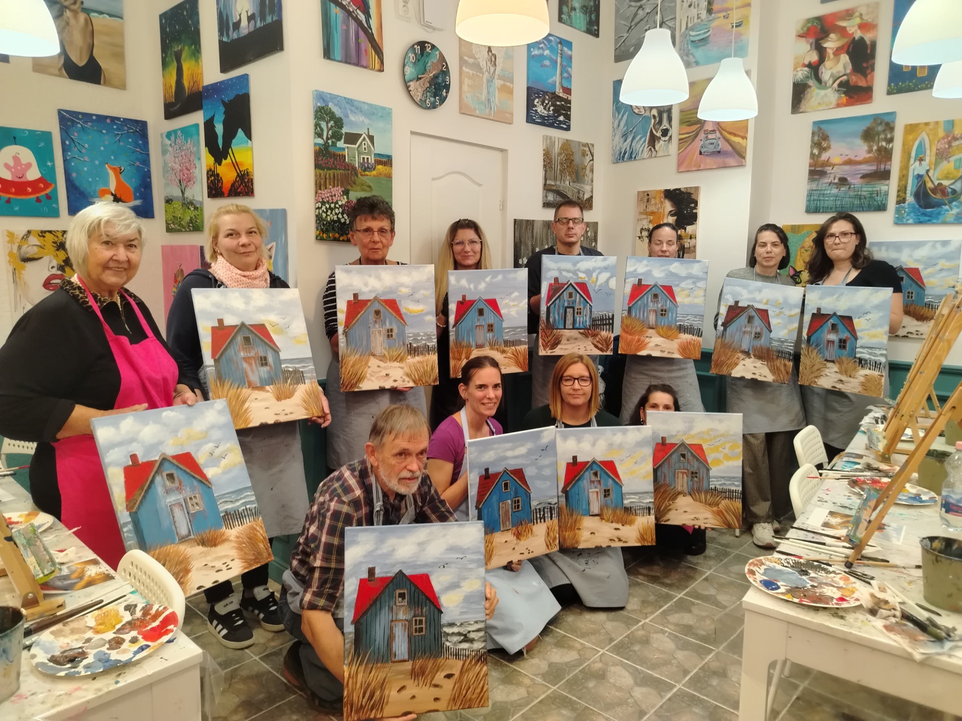 Ez a festmény számomra különösen kedves – a színei, a hangulata, az atmoszférája egyszerűen magával ragadó. És úgy vettem észre, nem csak engem: ismét telt házzal alkottunk, és gyönyörű, hangulatos képek születtek. 💙
