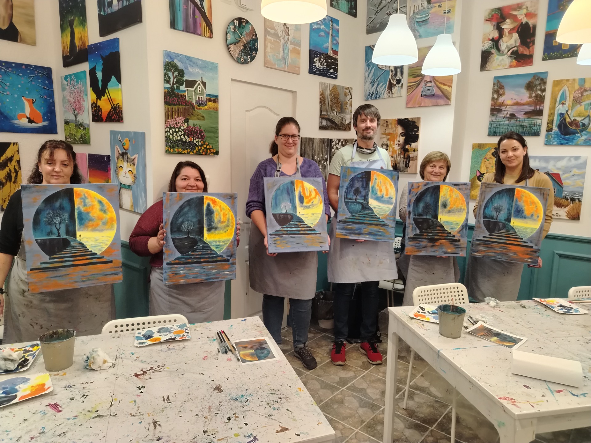 November 4-én ismét megfestettük a "Nappal és éjszaka" című festményt a KATart élményfestő stúdióban, Újpesten. Ez a különleges, misztikus hangulatú kép sokak kedvence, ezért hatalmas öröm volt látni, hogy visszatérők és új résztvevők is csatlakoztak a workshophoz. ✨
