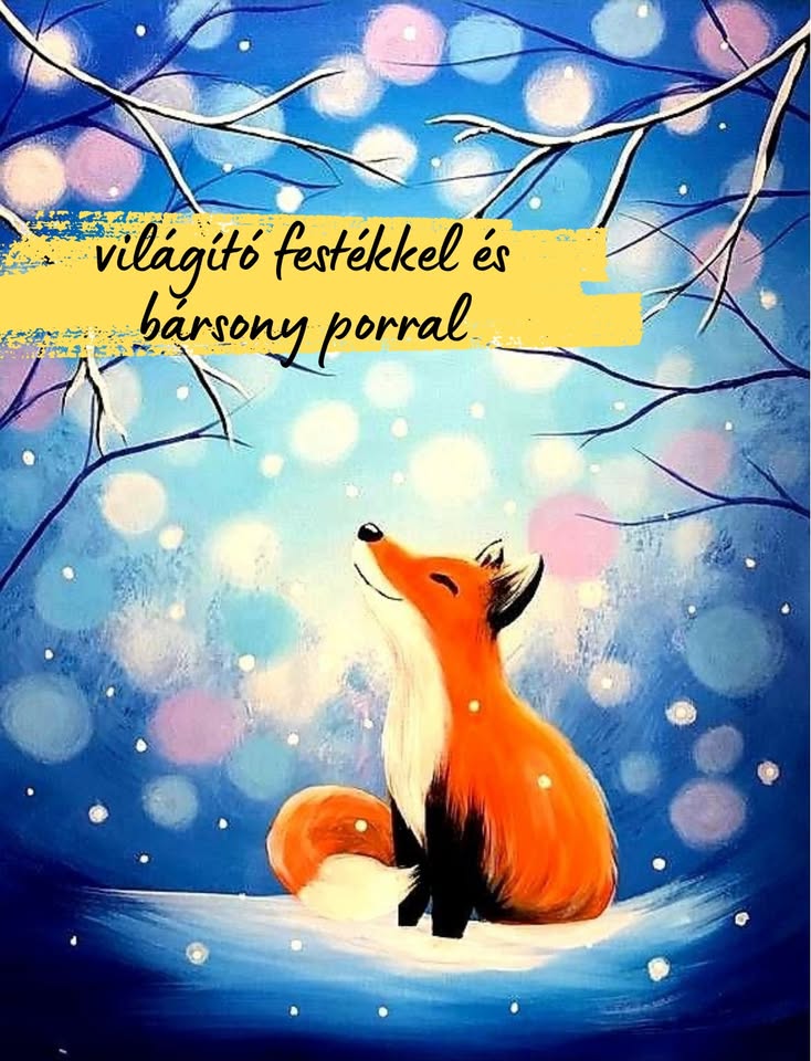 A kép elkészítéséhez világító (FOSZFORESZKÁLÓ) festéket, valamint bársony port is használni fogunk! Így egy cuki puha rókája lesz mindenkinek!